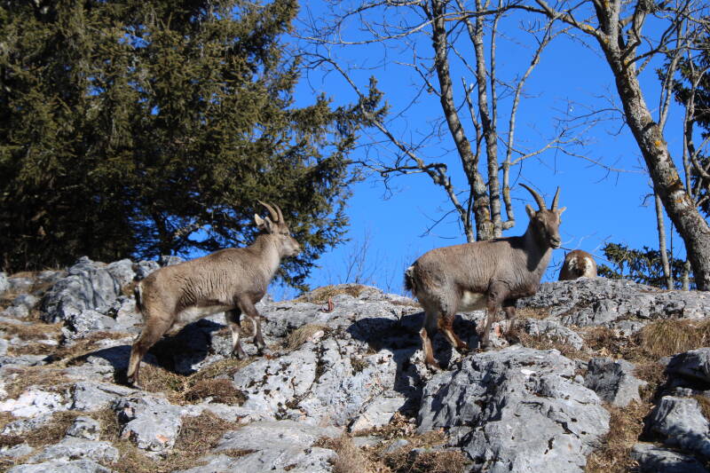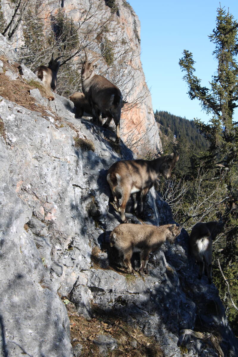 irgendwann trifft man wieder auf den markierten Wanderweg. und damit auch wieder auf andere Menschen. heute waren es nicht allzu viele, trotz des schönen Wetters. und Elfie hat Recht. trotz der Nähe zu Graz. trotz des Umstandes, daß die Wanderung weder technisch noch konditionell wirklich fordernd ist, egal von welcher Seite man den Gipfel ansteuert. überlaufen ist die Rote Wand, glücklicherweise, nicht. wo man Menschen trifft gibt es Gerede. das ist ja auch das Schöne am Wandern. man trifft keine unfreundlichen Menschen. und hier heroben trifft man eben auch, mit weniger Glück als man vermuten möchte, auf Steinböcke oder Gämsen. so auch heute. alle waren wir so ein klein wenig woanders als wir die Tiere erblickten. schwer zu sagen welche Gefühle da in jedem keimten. ich kann ja die meinen auch nur schwer in Worte fassen. auch wenn ich an dieser Stelle jetzt in der literarischen Ausdruckskiste kramen könnte. denn der schönen Worte gäbe es jetzt viele. doch mir will jetzt, ganz ehrlich, nicht eines einfallen. ich kann nur sagen. so wie heute habe ich die Tiere noch nie angetroffen. ich sah schon den "Chef" erhaben und stolz in der Sonne liegen. sich präsentierend für Fotos. umgeben von seiner Damenschaft. ich sah junge Steinböcke in Vorbereitung für den Nachfolgekampf. es kam auch vor, daß keine Steinböcke anzutreffen waren.